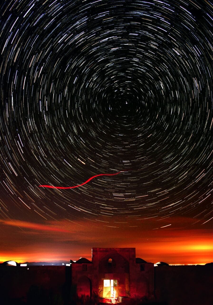 عکاسی از رد کهکشان و رد ستارگان در کاروانسرا تاریخی قصر بهرام